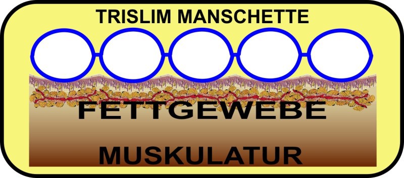 TRISLIM arbeitet mit Manschetten die, durch Druckluft, eine Kompression des Binde – und Unterhautfettgewebes erzeugen.